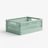 Crafted for easy storage, these eco-friendly folding crates are unlike any other! Made from 100% recycled plastic, these stackable crates are perfect for any size shelf - two mini crates fit perfectly on one midi-sized crate.
